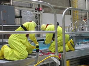 Loading of one of the capsules into an experimental assembly in the ATR canal.