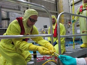 Members of the Lightbridge and INL teams are observing the capsule loading into an experimental assembly.